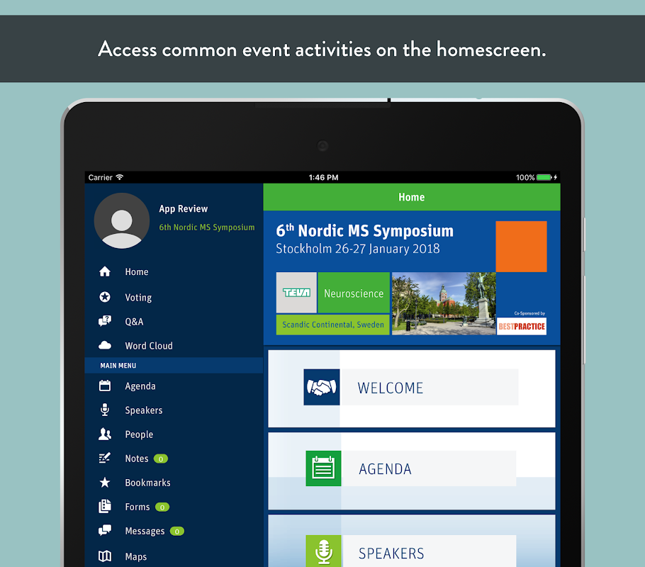 Enhance your experience using the official mobile app dedicated to the event. The TevaScience app provides registered delegates with a paperless environment and offers innovative ways for interaction and networking at the meetings. Some of the features are the following: