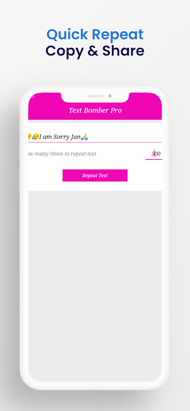 💥شارك النص المتكرر في كل مكان من تطبيق Text Bomber Pro.