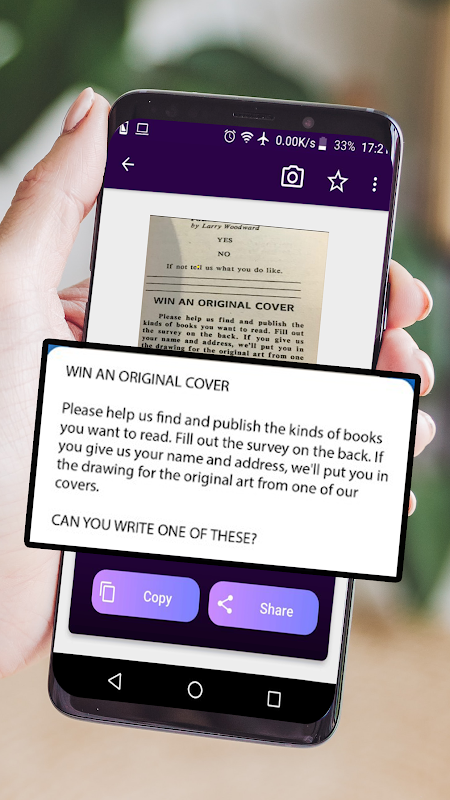 يمكنك نسخ النص ولصقه أينما تريد: في الدردشات وملفات Word وتطبيقات الوسائط الاجتماعية وما إلى ذلك. ويمكنك استخدام تطبيق Text scanner لتحويل أي ملف pdf إلى نص مما يمكنك نسخه أو مشاركته ، فهذا يعني أنه يمكن أن يعمل مثل تطبيق OCR Scan Image to PDF Converter الذي يحول أي ملف pdf إلى نص بسهولة.