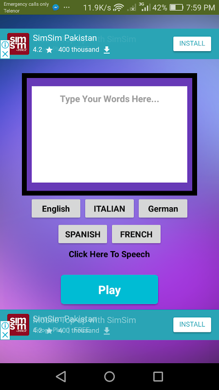 النص إلى التطبيق الكلام الذي يقرأ أي نص تكتبه! حاليا ميزات: