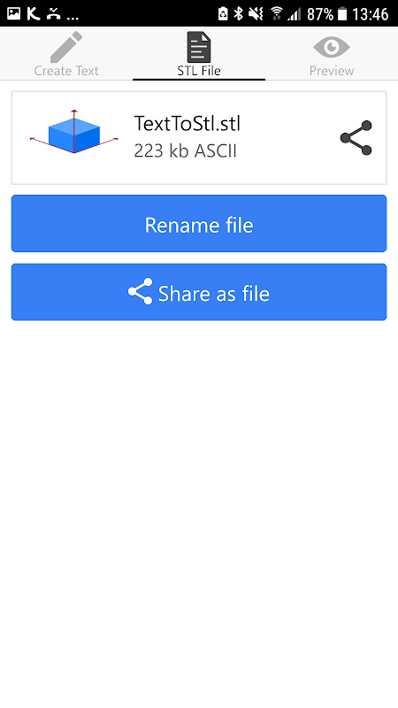 يمكنك اختيار مشاركة النموذج الثلاثي الأبعاد كملف STL إلى gmail أو محرك google أو الخدمة التي تفضلها.
