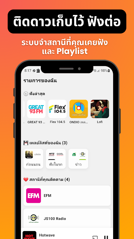 🎉 تم تصميم ThaiRadio ليكون سهل الاستخدام لجميع التايلانديين. دعم الخطوط الكبيرة لكبار السن ويوجد نظام ذكي يتعلم ما تحب الاستماع إليه.