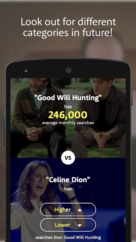 It’s easy to play, simply decide which search term has been searched for the most by selecting higher or lower. The objective is to get the most right in a row.