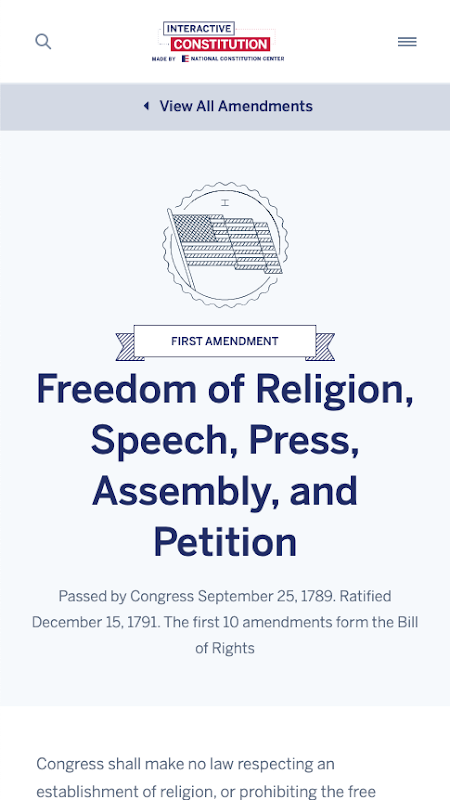 يقدم تطبيق الدستور التفاعلي المجاني النص الكامل لدستور الولايات المتحدة ويضم مقالات لعلماء بارزين توضح بالتفصيل مجالات الاتفاق والاختلاف عبر مجموعة من وجهات النظر الفلسفية والقانونية. تم إنشاء هذا المورد غير الحزبي من قبل مركز الدستور الوطني بالشراكة مع جمعية الدستور الأمريكية والجمعية الفيدرالية ، وقد تم تمييزه من قبل مجلس الكلية في تاريخ التنسيب المتقدم والدورات الحكومية. أصبح الدستور التفاعلي ممكناً بفضل منحة من مؤسسة جون تمبلتون.