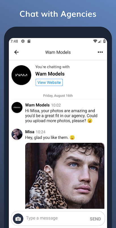 5. Model agencies use our app on a daily basis. When they see and like your profile, they'll get in touch with you directly via the app.