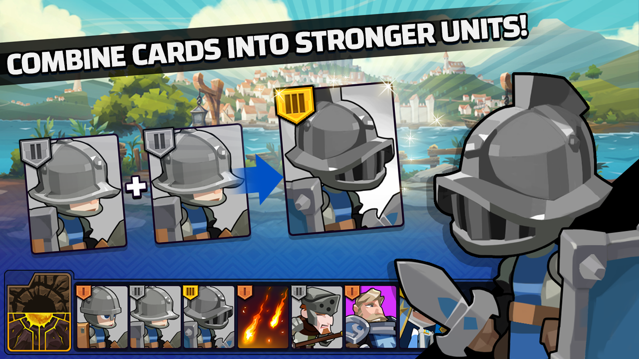 - Pay attention to the random cards that are created by the Hero and Magic cards in your deck. You may merge the same cards to make them turn into a higher-grade card or summon low-grade cards as many as possible to create a huge waves of heroes and overwhelm your higher-grade opponent by force of numbers. Your victory depends on how well you use the cards in your hand. Strategy