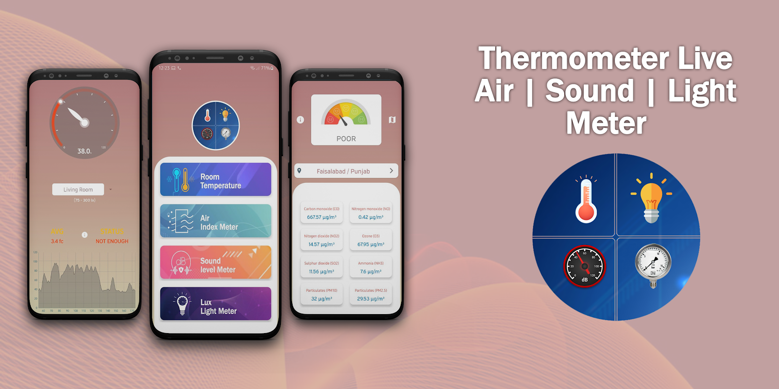 عن Thermometer App | Air | Sound & Lux Light Meter
