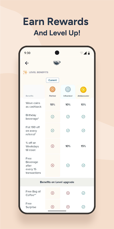 جعل ، تتلقى استرداد النقود كقطع نقدية Wave التي يمكن استبدالها في المقاهي.