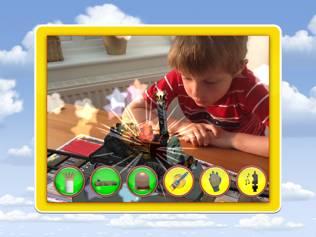 To see the animations in action, find one of the red Augmented Reality boxes in your Thomas & Friends King of the Railway book. Then launch the app, point your device's camera at the book while it is open flat on the floor or a table and watch Thomas and his friends come to life!