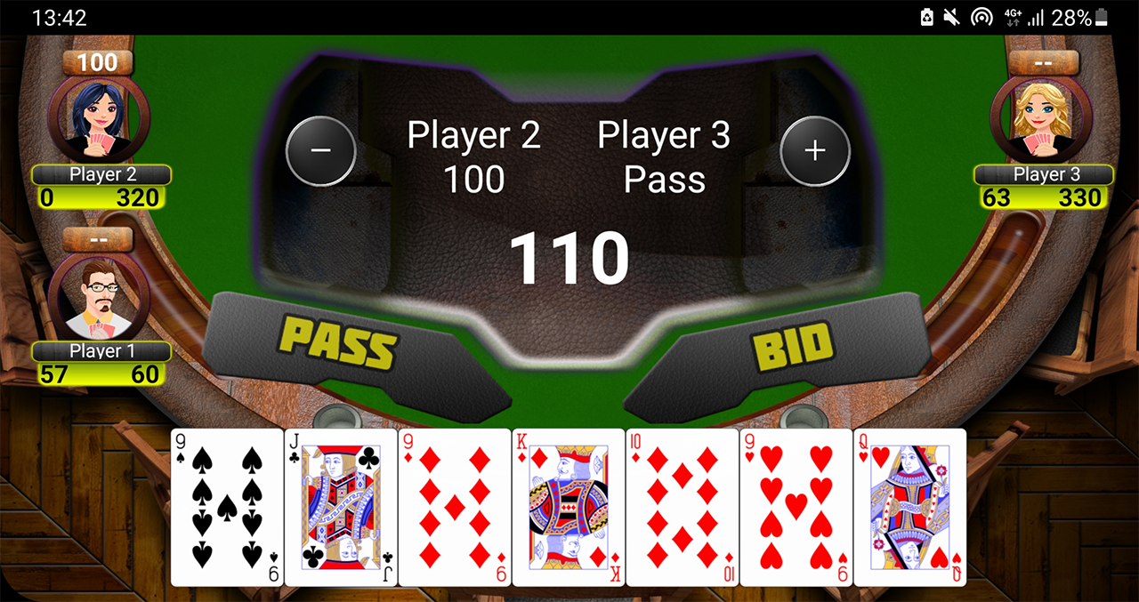 1000 or Thousand is a 3 player trick-taking card game based on accumulating points throughout hands to win the whole game. The game is based on another game called Marriage, which is the French word for marriage. It refers to pairs consisting of two cards (Queen & King) of the same suit. The most crucial skills for the players are being able to remember cards and being good in thinking strategically. The game is played with one small deck of cards and throughout the game the trump suit changes. There are a total of 24 cards.