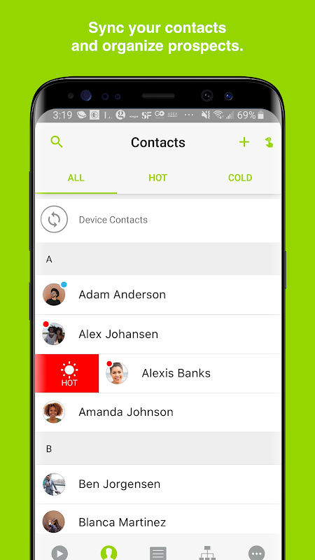 الأدوات: لم يكن من السهل أبدًا مشاركة المعلومات حول منتجاتك وفرصك عبر الرسائل النصية القصيرة أو البريد الإلكتروني أو وسائل التواصل الاجتماعي. ما عليك سوى اختيار الأدوات المصممة خصيصًا للترويج لعملك ومشاركتها مع جهة اتصال. ستتلقى إشعارًا عندما تعرض جهات الاتصال أداة حتى تعرف بالضبط متى يجب المتابعة! يمكنك حتى إضافة الأدوات الخاصة بك. قم بتسجيل أو تحميل مقاطع فيديو قصيرة لمشاركتها مع العملاء المحتملين. يمكنك أيضًا إضافة إجراءات إلى مقاطع الفيديو الخاصة بك بحيث يمكن للآفاق التفاعل مباشرة في الفيديو. تسمى هذه الأدوات التفاعلية الأكثر ذكاءً Brightool وهي توفر المزيد من البيانات للمتابعة مع إشعارات ActionAlert في الخلاصة. لا يوجد اتصال بيانات؟ لا مشكلة! ما عليك سوى تنزيل أدوات مثل مقاطع الفيديو في التطبيق مسبقًا للتشغيل في وضع عدم الاتصال.