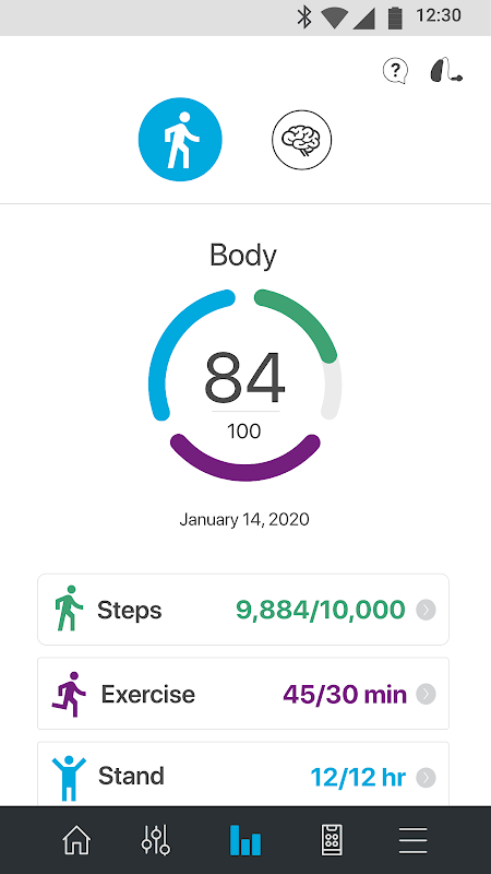 Track steps and other movements and set daily goals. Tracking fitness activities has been shown to inspire people to continue or increase their activity. Monitor hearing aid use and social engagement and set daily goals. This can encourage more social interaction which can positively impact brain health.