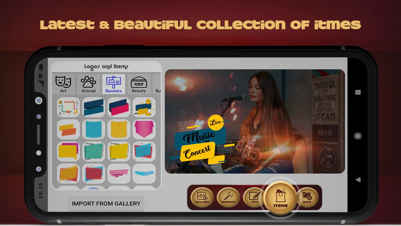 * Import your images or your logo from the gallery of your phone easily and add it to any design you want within a few seconds.