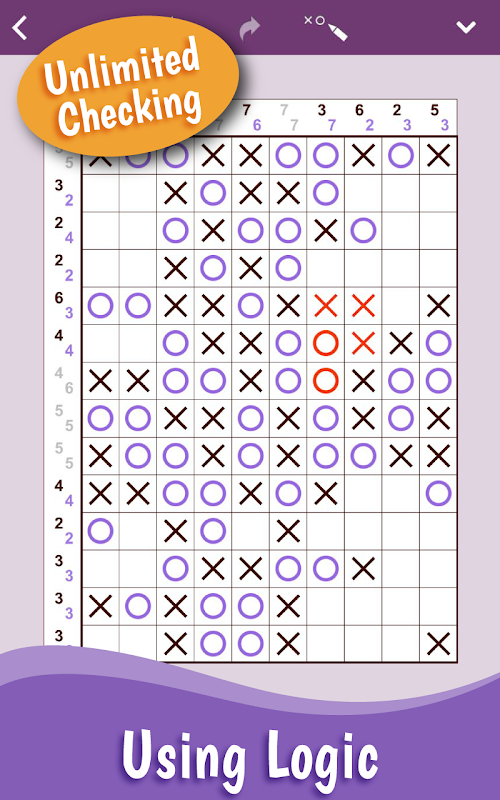 تتميز اللعبة بمسطرة لعرض ومقارنة الصفوف أو الأعمدة، وعدادات لإظهار عدد علامات X وO في كل صف وعمود، وعلامات قلم رصاص لوضع علامة X أو O مؤقتة عند حل الألغاز الصعبة جدًا.