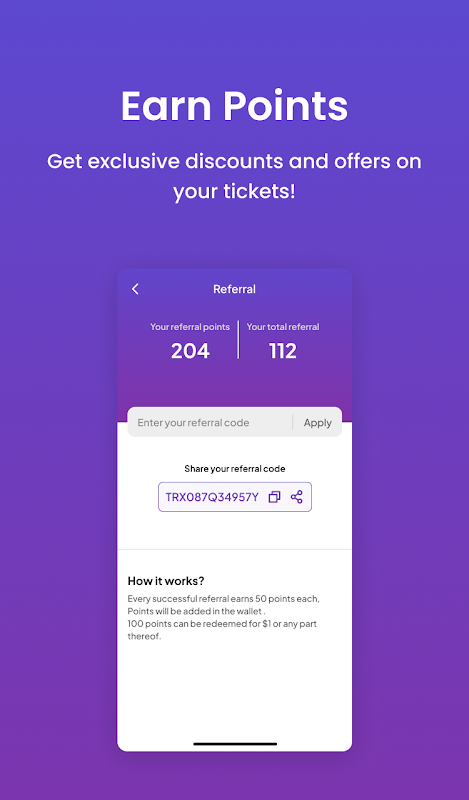 * احصل على النقاط التي يمكن تحويلها إلى نقود لشراء التذاكر