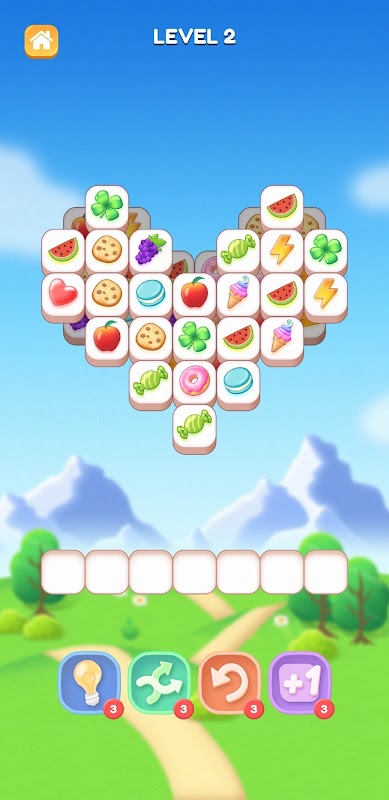 * طابق 3 بلاطات متطابقة لإزالتها من اللوحة، تمامًا مثل لعبة Mahjong.