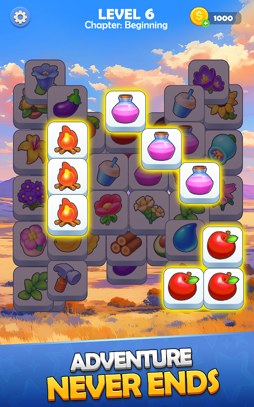 Join matching the tile game adventure and complete epic matching three tiles journey. 🎉