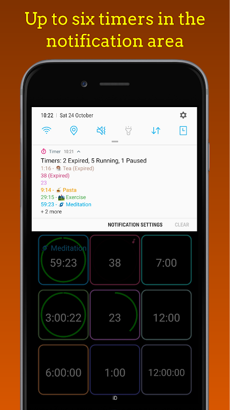 • عرض ما يصل إلى ستة مؤقتات قيد التشغيل في شريط الإشعارات