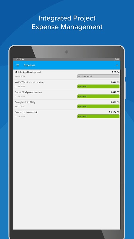 يمكن للمستخدمين إنشاء أوراق النفقات بسرعة وإدخال تفاصيل حول تلك النفقات، بما في ذلك العملة والوصف وما إذا كانت قابلة للفوترة أم لا. يمكن للمستخدمين إرفاق لقطات من الفواتير ببنود النفقات المعنية، مما يعني عدم فقدان فواتير النفقات بعد الآن.