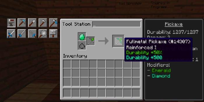 And once you really get the hang of the mod you’ll be able to give your tools special modifiers like auto-repairing. So when your tool starts to deteriorate it’ll actually fix itself over time. Basically you can enchant your tools without needing experience first. It works entirely off of the items you have in your inventory. So instead of going into spells and XP to enhance your tools you can opt for hard work and determination with this mod.
