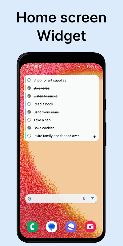 أداة قائمة المهام المريحة التي تتيح لك إضافة المهام وتحريرها وحذفها مباشرة من شاشتك الرئيسية. وهذا يجعل من السهل إدارة مهامك أثناء التنقل دون الحاجة إلى فتح التطبيق في كل مرة.