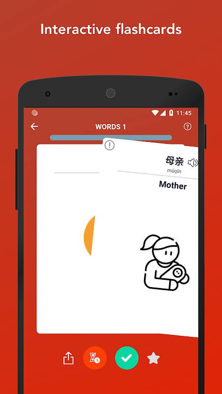 - اقلب البطاقات التعليمية للتعرف الى معاني الكلمات الصينية المبسطة.