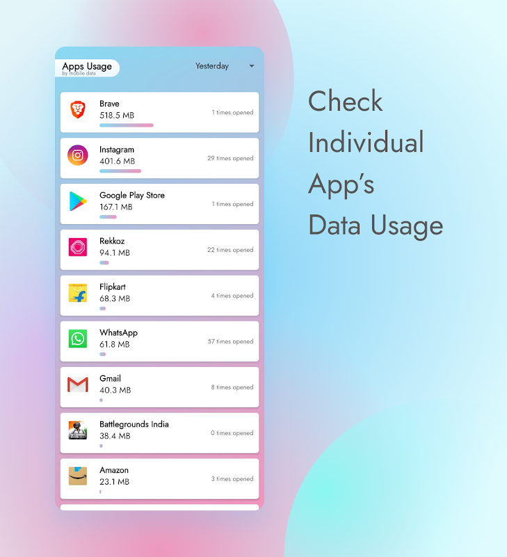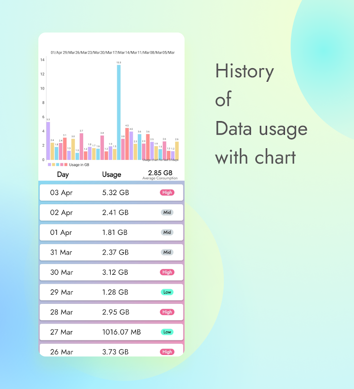 تقديم تطبيق الاستخدامات اليوم الذي سيساعدك على تتبع استخدامات البيانات الخاصة بك في اليوم والأيام السابقة.
