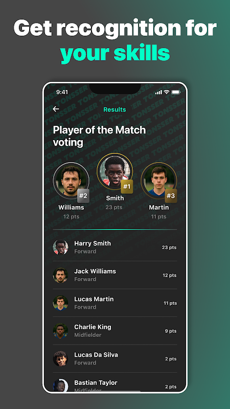 * احصل على لقب "أفضل لاعب في المباراة" من قبل زملائك في الفريق بعد كل مباراة