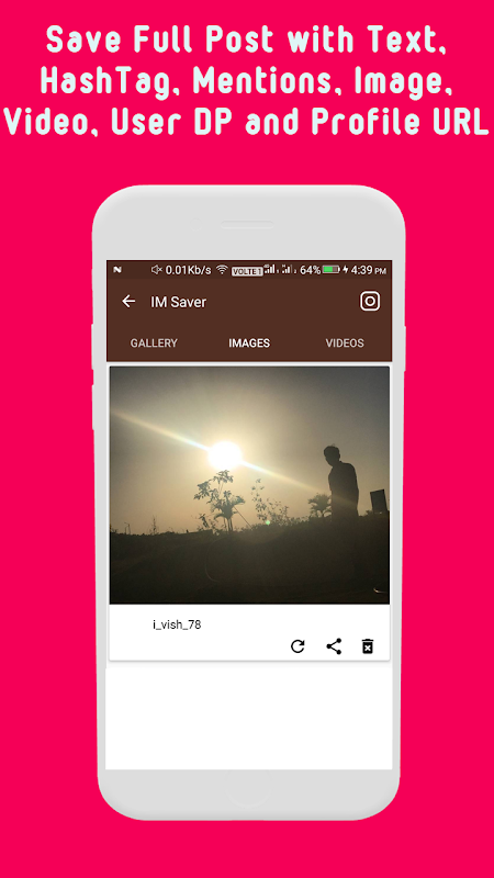 Save your favorite photo or video from IM with text, hashtags, mentions, user profile url and user dp.