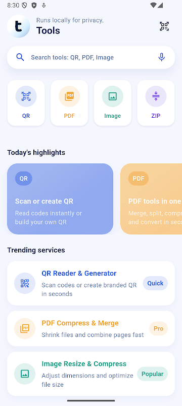 يركز تطبيق Tools على الخصوصية والسرعة وسهولة الاستخدام.