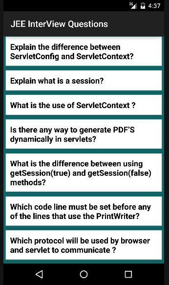 Here you will find a whole lot of Java/J2EE interview questions . This will help you to learn the core concepts and key areas of Java J2EE development through Java interview questions and J2EE interview questions approach. The page is mainly for job seekers, promotion seekers, and interviewers.