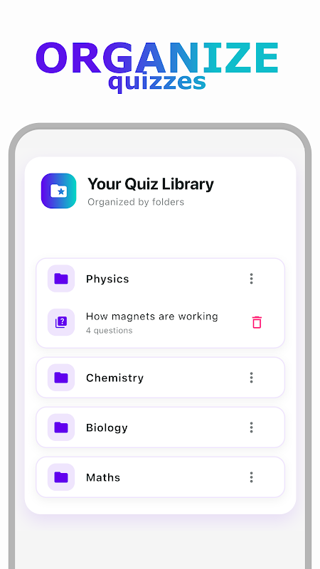 حسب الموضوع: أدخل موضوعًا مثل "فيزياء الكم" أو "تاريخ العالم" ودع الذكاء الاصطناعي يُنشئ الأسئلة فورًا.