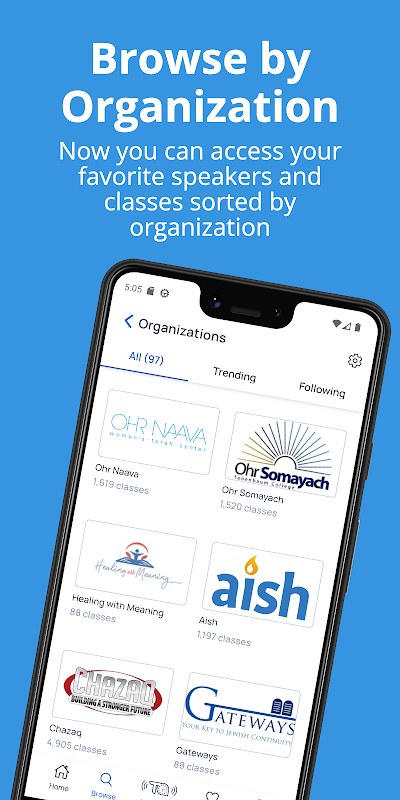 الوصول الفوري إلى دروس التوراة بالفيديو والصوت عالية الجودة من قبل أعظم علماء التوراة في العالم. تم إنشاء هذا التطبيق القوي والمصمم جيدًا لتزويدك بتجربة تعليمية أكثر ملاءمة وسهولة ومتعة.