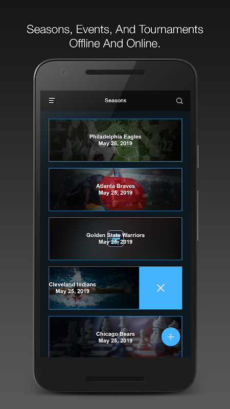 - إنشاء والمشاركة ومتابعة البطولات أو الأحداث أو المواسم أو الفرق