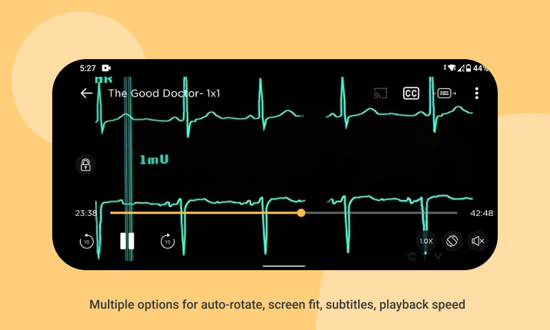 - خيارات متعددة للتدوير التلقائي وملاءمة الشاشة ، فهي تتيح لك تغيير حجم الفيديو الذي تشاهده بناءً على اختيارك.