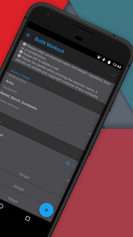 * Native keyboard to log exercise