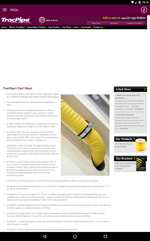 هذا التطبيق يسمح للمستخدم لحجم المنتج TracPipe® مرنة أنابيب الغاز، وذلك باستخدام أسلوب التحجيم المناسب. التطبيق يعرض الحجم المناسب للTracPipe® لقدرة معينة تبعا لنوع الغاز، ضغط العرض وانخفاض الضغط المسموح به المختارة من قبل المستخدم. عن طريق اختيار المعلمات التصميم باستخدام السهل القوائم المنسدلة المستخدم ثم يختار طول الأنابيب وأنابيب حجم، على السهل قراءة عجلة آلة حاسبة، للعثور على قدرة قابلة للتسليم من قبل أي من أحجام سبعة تقدمها TracPipe®.