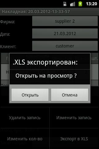 * Export to an printable SD-card .xls file (Excel 97-2003), optionally openable on PDA