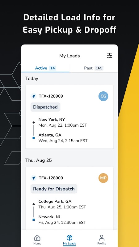 - البحث عن حمولات الشاحنات وتعيينها وتتبعها وإدارتها مباشرة من هاتفك