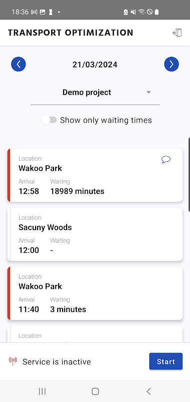 كسائق، يمكنك الحصول بسرعة على نظرة عامة على أوقات الانتظار الخاصة بك في مواقع التحميل والتفريغ. إذا كان هناك وقت انتظار، يمكنك كتابة تعليق والتقاط صورة لسبب التوقف، وتتم مشاركة المعلومات على الفور مع المرسلين على سبيل المثال.