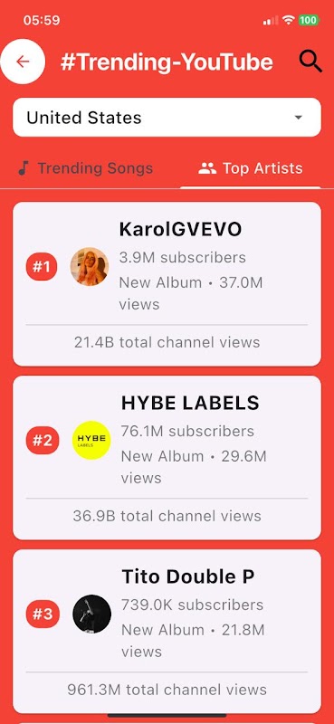 تطبيق لعرض الأغاني والفنانين الرائجة في جميع أنحاء العالم