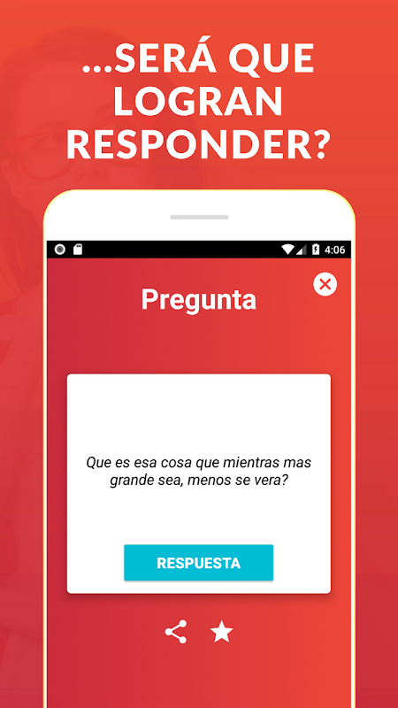 Allá afuera hay cientos de Apps de adivinanzas con respuestas, lo único que debes tener en cuenta, es buscar las MEJORES PREGUNTAS siempre!...preguntas que no sean tan fáciles de resolver!