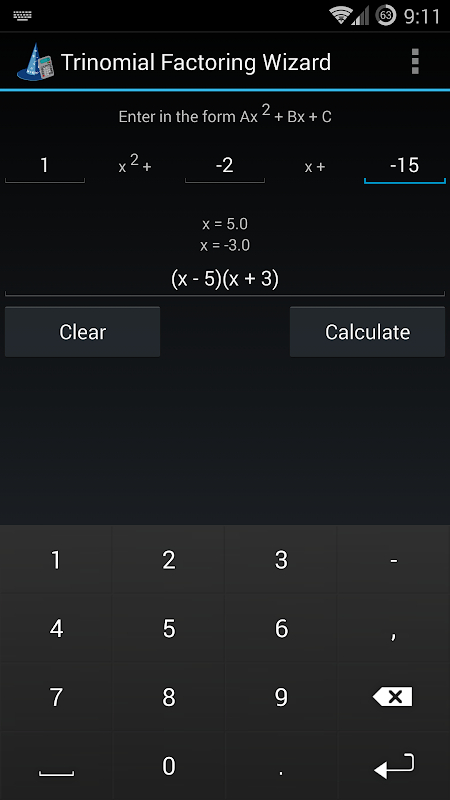 العوملة معالج ثلاثي الاسم - المعادلات عامل من الفأس شكل ^ 2 + ب س + C