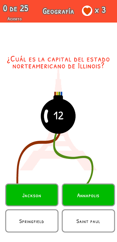 Pulsa sobre las respuestas incorrectas y evita que explote la bomba.