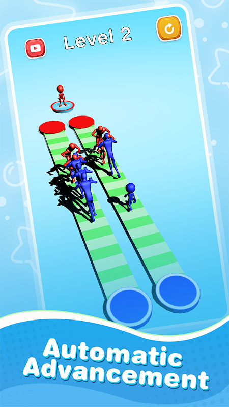 أهلاً بكم في لعبة "دفع القوات"، وهي لعبة سهلة مليئة بالاستراتيجية والمواجهة. يُنشئ كلٌّ من اللاعبين والأعداء شخصًا على فترات منتظمة. عندما تسحب الشخص الذي تُنشئه إلى الطريق المركزي، فإنه يتقدم تلقائيًا نحو قاعدة العدو. اصعد إلى قاعدة العدو بقواتك للفوز؛ إذا وصل العدو إلى قاعدتك أولاً، فستخسر. عندما تصطدم القوات المتعارضة، فإنها تتدافع ضد بعضها البعض. إذا اندمجت قوتان من قواتك، فإنهما تُشكلان كيانًا أقوى بقوة دفع أكبر. تتميز لعبة "دفع القوات" بضوابط تحكم بسيطة، ولكنها تُقدم أسلوب لعب استراتيجي عميق. يجب على اللاعبين نشر القوات المُنشأة بحكمة واغتنام اللحظات المناسبة للتقدم. هل أنت مستعد للتفوق على خصمك؟