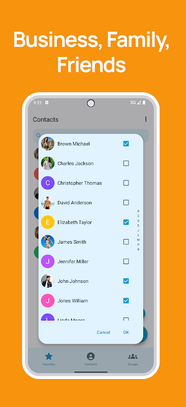 - 👥 جهات اتصال المجموعة: قم بتنظيم جهات الاتصال الخاصة بك في مجموعات مثل الأعمال والعائلة والأصدقاء والمزيد ليسهل الوصول إليها.