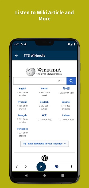 2.1.بحث في المقالات في التطبيق على ويكيبيديا أو جوجل والاستماع !!!.