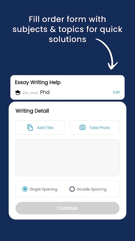 هل سبق لك أن شعرت بأنك عالق في الواجبات المنزلية الصعبة أو كنت بحاجة إلى مساعدة للتفوق في الأكاديميين؟ TutorBin هناك! نحن لسنا مجرد منصة تعليمية عبر الإنترنت، ولكننا جسر فوق تلك المياه الأكاديمية الصعبة، مما يساعدك على الوصول إلى شواطئ النجاح. إن تعلمنا الشخصي ليس مجرد كلمة طنانة ولكنه وعد. تخيل أن لديك صديقًا تثق به يساعدك في إدارة مهامك، ويقدمها في المواعيد النهائية، ويتمتع بالمرونة الكافية لمساعدتك في الدراسة الأكاديمية على مدار الساعة طوال أيام الأسبوع. TutorBin هو صديق دراسة، يمكّنك من الحصول على إجابات عمل أصلية ودقيقة ويوفر موارد لتحسين فهمك للموضوع. لقد ساعدنا أكثر من 1.1 مليون طالب وحصلوا على درجات عالية في الأكاديميين. سرنا؟ الجمع بين المعرفة المتخصصة وحب التدريس. حصل على تقييم 4.2/5 على Trustpilot و4.4/5 على Edureviewer.