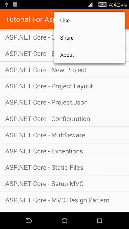 Orange Tutorials brings for you handy and best Tutorial For Asp.Net Core. Tutorial For Asp Dot Net Core App is user friendly, light weight, an easy-to-use for learning. The lessons in App are easy and effective. The app has following features: