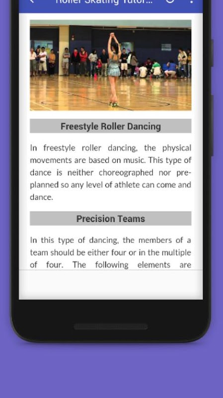Tutorials for Roller Skating Offline is a complete application for those of you who want to learn Roller Skating easily and for free. There are dozens and even hundreds of Roller Skating tutorials starting to base for beginners to advanced. All these tutorials you can read offline without the need to connect to the internet or mobile data.